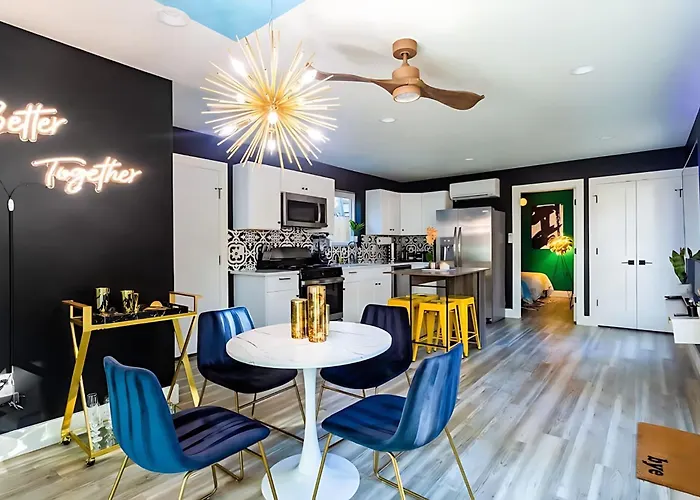 La Two-Home Group Retreat - 6Th Street 4 Min Walk dispone de una cocina bien equipada con un lavavajillas, cafetera/tetera y un horno para una estancia cómoda. Las Trancas Taco Stand, que sirve una gran variedad de platos, está a unos 5 minutos a pie. La estación de autobuses East Austin Multi-Center está justo al lado de la villa, lo que permite a los huéspedes descubrir fácilmente Austin.